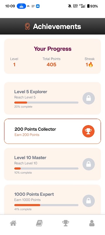 ✅ 진행 상황 추적 및 별점 획득