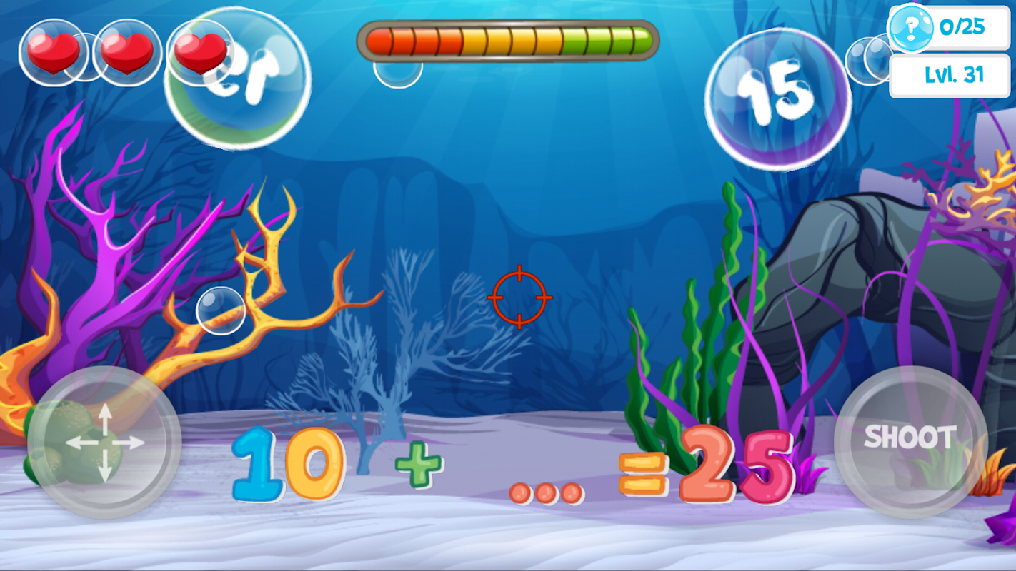 There are more levels and stars that you can get, with 3000 more possible random questions that will appear and 5 different underwater themes that can make your counting practice fun. With all the basic mathematical operations you will lack a variety of questions.