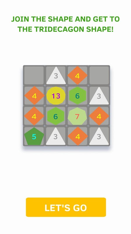 Join the shape and the tridecagon but don't stop, try to reach the secret figure with 15 sides !