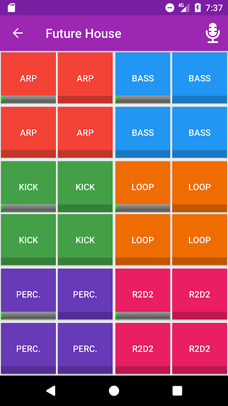 The Looppad is an Android application to allow you making music. There are six different loop groups in each preset. Each group contains 4 different loops. You can easily mix sounds and produce great music! If you want, you can also record your mix and share it anywhere!