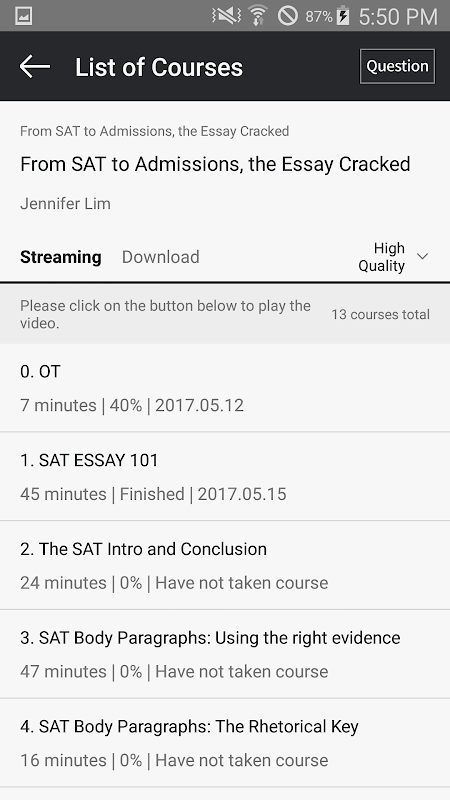 - You will be able to both stream and download any lectures you are currently taking.