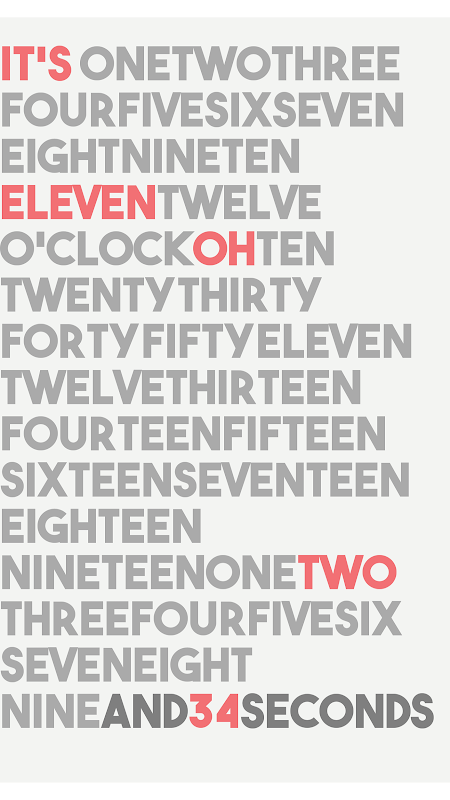 The Word Clock displays the time using a combination of words and numbers, optimized to be both aesthetically pleasing and highly readable. The Word Clock keeps things simple and to the point, and allows you to quickly set a countdown timer, start and pause a stopwatch, and check the time at a glance.