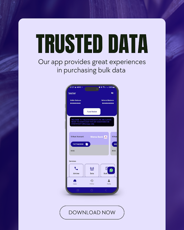 Theluckyonesdata는 사용 가능한 모든 형태의 VTU 패키지를 매우 저렴하고 저렴한 가격으로 얻을 수 있는 플랫폼입니다. 또한 품질 저하 없이 가능한 최상의 가격으로 디지털 요구 사항에 대한 솔루션을 제공하는 기술 플랫폼이기도 합니다. 우리는 방송시간, 데이터번들, 케이블TV(DStv, GOtv & Starttimes), 전기요금 지불 등을 즉시 충전할 수 있는 서비스를 제공합니다.