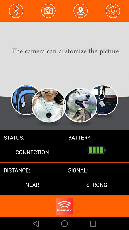 또한, 응용 프로그램은 원격 셔터로 사용할 수 있습니다. 응용 프로그램에서 카메라를 실행하려면 카메라 아이콘을 누릅니다. 전화 걸릴 사진이나 비디오를 트리거 할 thetrackey에있는 버튼을 누릅니다.