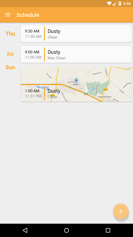 Thinking Cleaner can help you to make sure your house is always clean when you get back home, use the scheduling to schedule cleaning (even multiple cleaning sessions a day!). Also, you can set up Thinking Cleaner to start a cleaning session automatically when you leave your house.