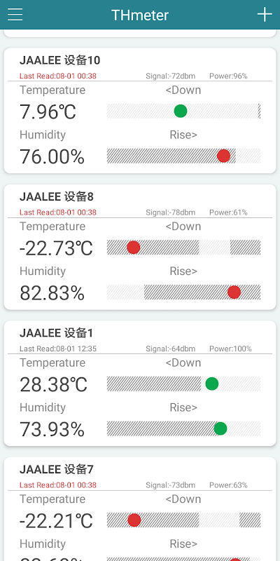 JAALEE Temperature and Humidity APP is a software for managing Jiali thermometer and hygrometer. It can view the data of nearby thermometers and hygrometers in real time, display temperature and humidity distribution areas in real time, and export temperature and humidity data.