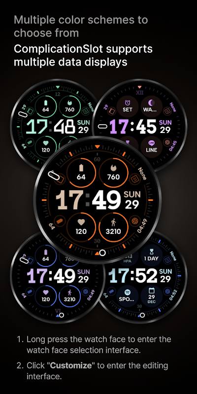 사용자 정의 가능한 다채로운 ComplicationSlot 시계 모드