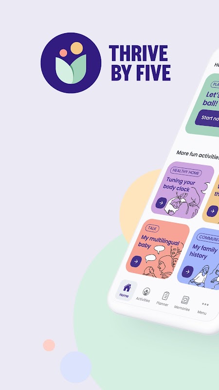 Thrive by Five는 최신 육아 연구와 귀하와 자녀가 함께 즐길 수 있는 재미있고 이해하기 쉬운 지역 활동을 결합합니다.