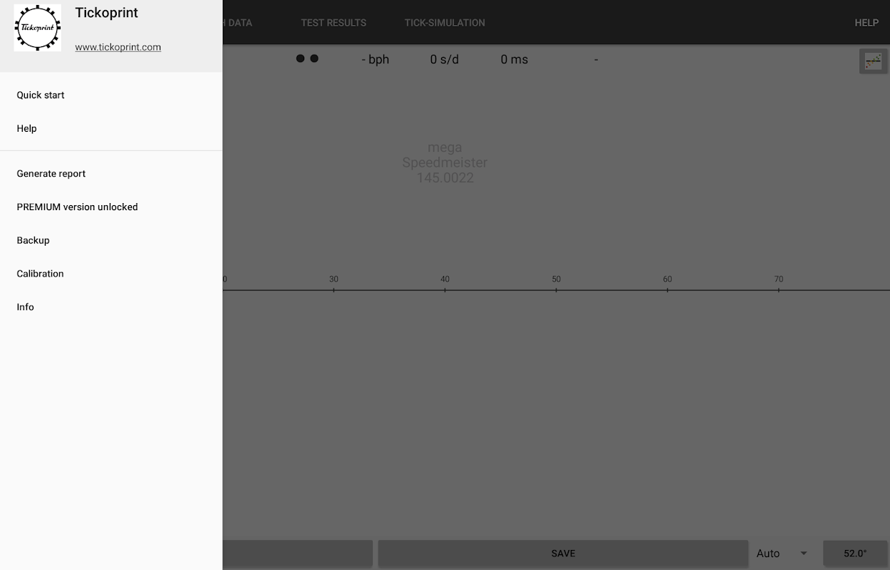 TICKOPRINT® FREE는 정확도 편차를 초 / 24 시간 단위로 표시하고 다이어그램 라인의 간격으로 비트 오류를 표시합니다. 사용자가 선택할 수있는 값이있는 "Tick"시뮬레이션은 TICKOPRINT의 작업 모델을 보여줍니다. 모든 테스트는 모바일 장치에 저장 될 수 있으며 테스트 결과를 확인하기 위해 재생 될 수 있습니다. "종이 스트립 실행"방향을 선택할 수 있습니다 (가로 또는 세로).
