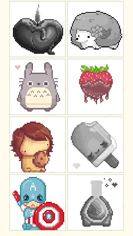 from small pixel image to colorful photos of the underwater world, superheroes, anime, animals, nature and much more
