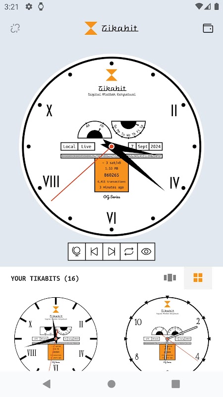 티카빗(Tikabit)은 최첨단 블록체인 기술과 매혹적인 디지털 아트를 결합하여 비트코인 블록이 생성될 때마다 진화하는 독특한 시각적 경험을 선사합니다. Android 기기와 Wear OS 스마트워치에서 실시간 블록체인 데이터가 매혹적인 아트워크로 변환되는 모습을 감상해 보세요.