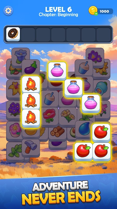 Join matching the tile game adventure and complete epic matching three tiles journey. 🎉