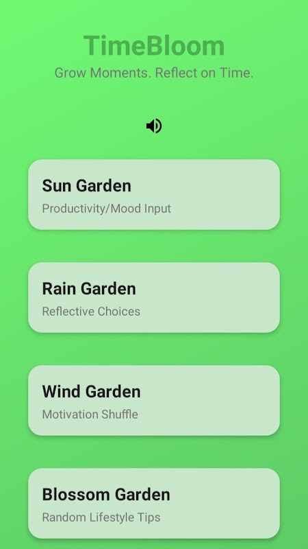 TimeBloom은 하루를 통해 한 정원씩 성장할 수 있도록 설계된 부드러운 라이프스타일 성찰 앱입니다. 🌱✨