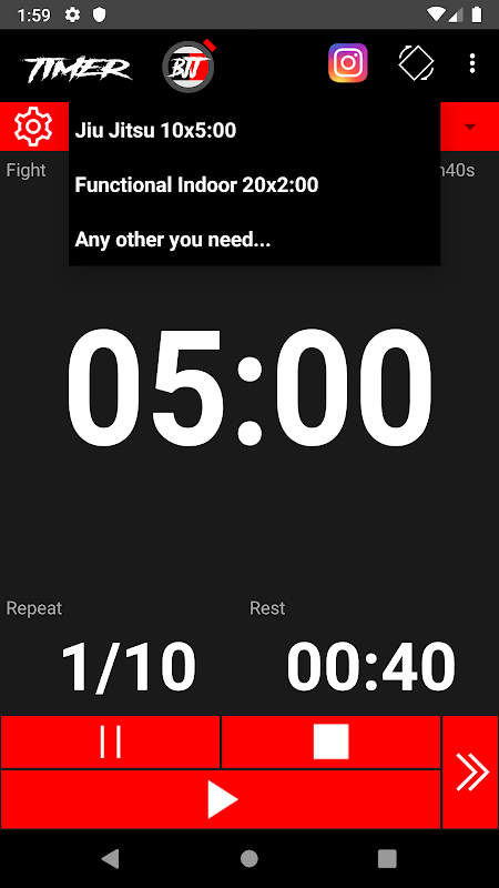 인터벌 타이머는 진동 및 가청 경고 구성으로 Jiu-Jitsu 싸움 / 훈련에 중점을 두었습니다.