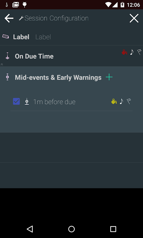 To use the pre-set Debate Timer (with two notifications, start + 1 minute, end - 1 minute), click the top left button, and select that option.