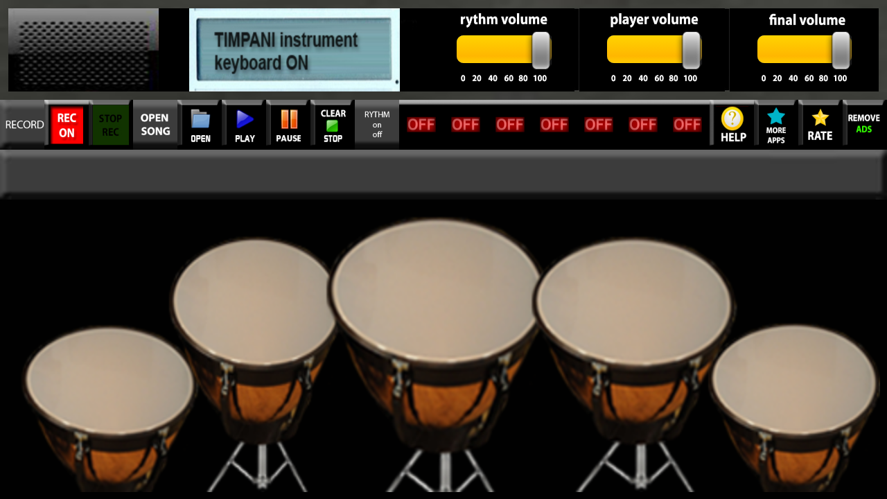 Timpani is android application designed for Android phones and tablets . Timpani contains two timpani instruments . You can play two timpani instruments with two virtual sound keyboard .