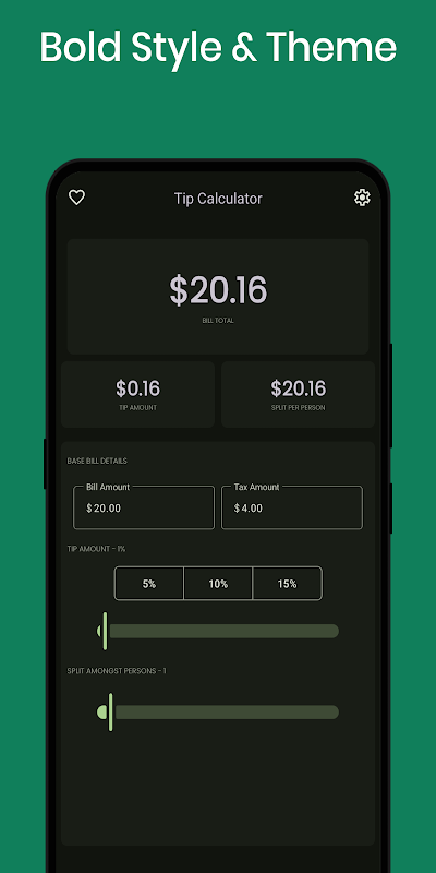 이 사용하기 쉬운 앱은 지출을 나누는 데 있어 추측을 없애줍니다. 청구서 금액을 입력하고, 팁 비율을 선택한 후, 비용을 나눌 사람 수를 정하기만 하면 됩니다. 몇 초 만에 명확하고 정확한 계산 결과를 얻을 수 있습니다. 계산기도 없고, 혼란도 없으며, 무엇보다도 광고가 없습니다.