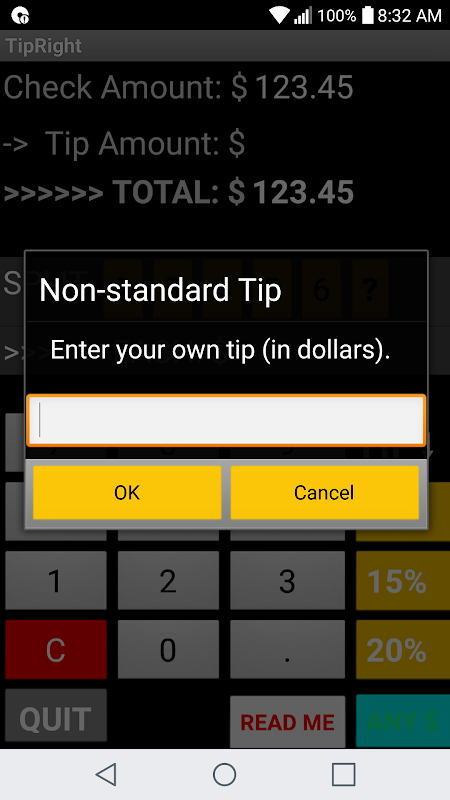TipRight is a simple, quick, easy to use, one screen restaurant bill calculator. It is designed for portrait mode cellphone use.