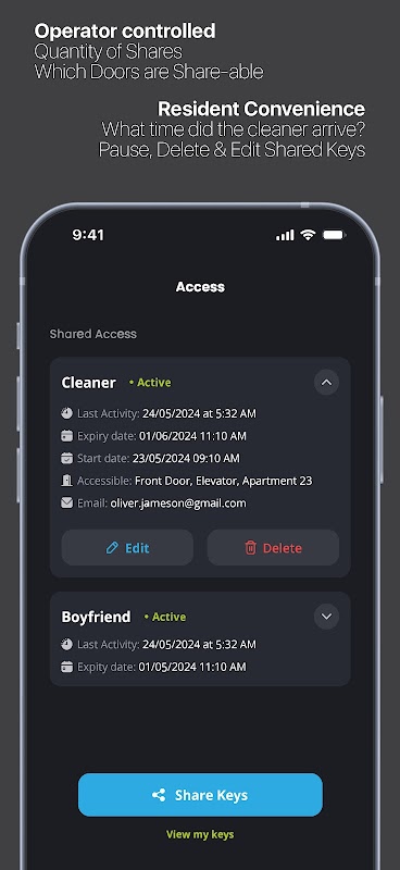 키 카드 및 열쇠 고리를 버립니다. 스마트 폰을 사용하여 문을여십시오!