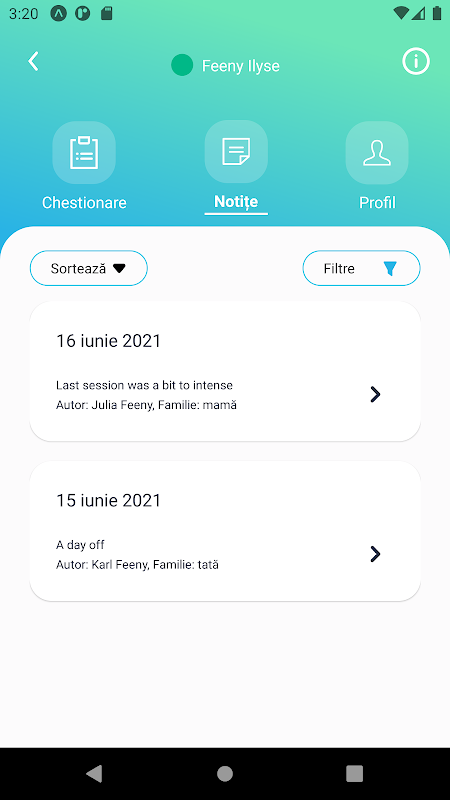 완전한 경험을 위해 애플리케이션은 사용자에게 관련 회원의 신체적, 정신적 건강과 관련된 메모를 텍스트 또는 미디어(사진) 형식으로 추가할 수 있는 가능성을 제공합니다.