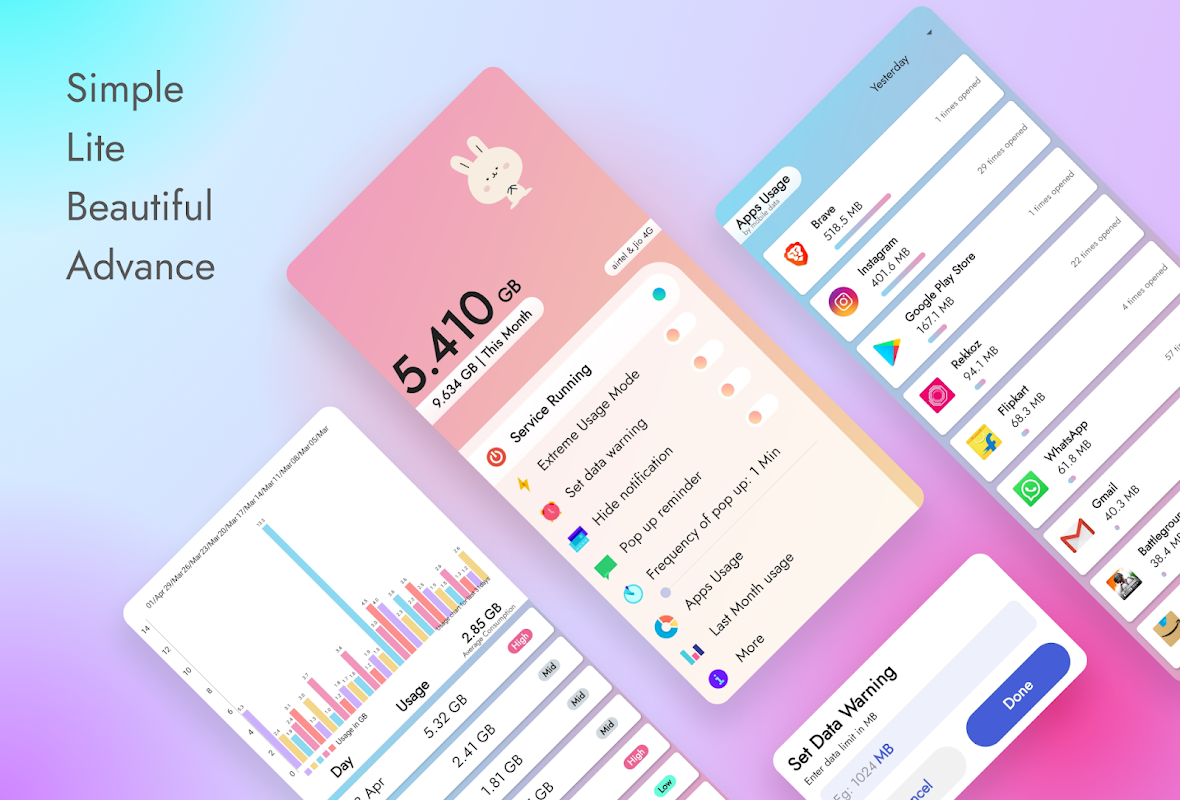 개인 정보 보호 및 보안 문제가 없는 인도 데이터 사용 애플리케이션입니다.