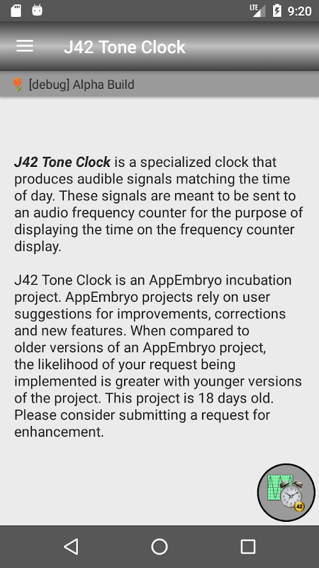 톤 시계는 AppEmbryo 배양 프로젝트입니다. AppEmbryo 프로젝트는 개선, 수정 및 새로운 기능에 대한 사용자 제안에 의존합니다. 이전 버전의 AppEmbryo 프로젝트와 비교할 때 요청이 구현 될 가능성은 프로젝트의 젊은 버전 일수록 더 높습니다. 인앱 피드백을 사용하여 개선 요청을 제출하십시오.