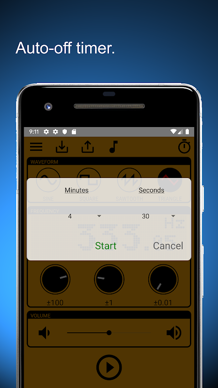 ● 사인파 / 정사각형 / 톱니파 / 삼각형의 4 가지 파형을 재생할 수 있습니다.