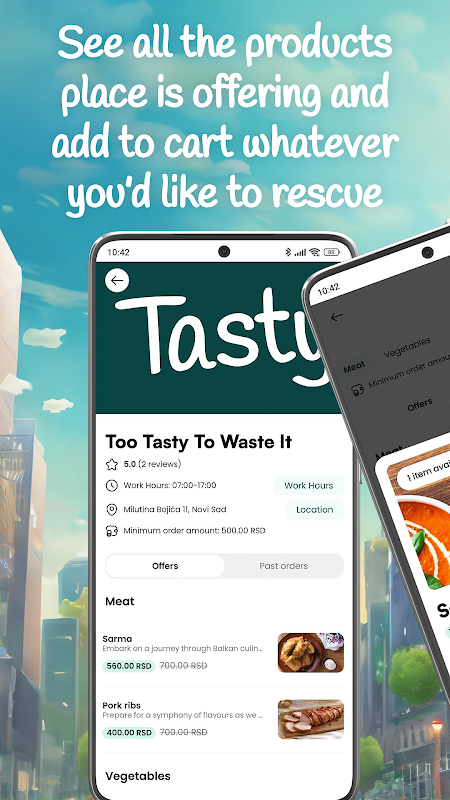 팔리지 않았지만 완벽하게 좋은 제품을 보유한 놀라운 레스토랑, 카페, 베이커리 및 지역 내 더 많은 상점을 찾아보세요. Too Tasty To Waste It을 사용하면 적은 비용으로 맛있는 식사를 구할 수 있습니다! Too Tasty To Waste를 통해 여러분이 구하는 모든 식사는 더욱 푸르고 지속 가능한 지구를 향한 발걸음입니다.