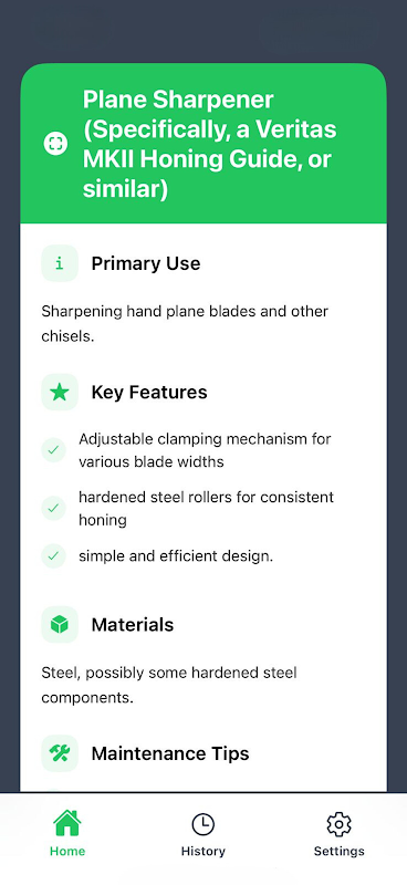 빠르고 정확한 도구 식별을 위한 최고의 앱인 Tool Identifier에 오신 것을 환영합니다. DIY 매니아, 전문가 또는 도구에 대한 호기심이 있는 분이라면 Tool Identifier를 사용하면 쉽게 작업할 수 있습니다. 사진 한 장만으로 첨단 AI 기술로 즉각적이고 정확한 식별이 가능합니다.