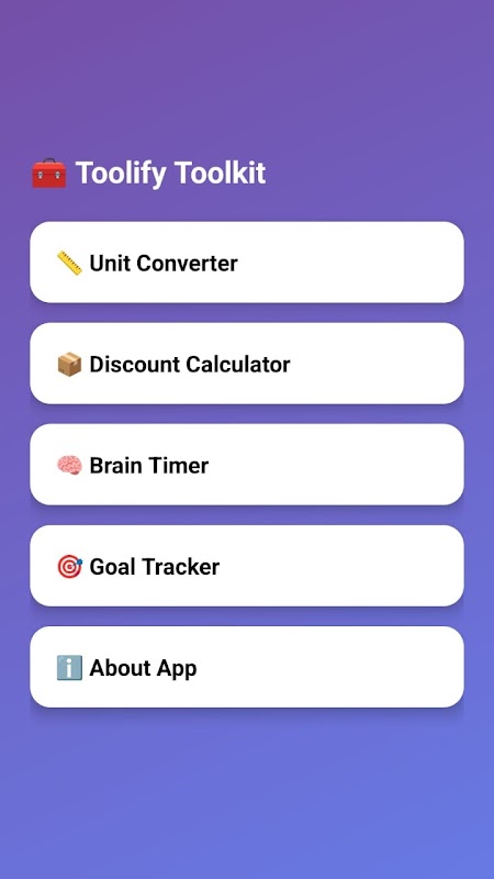 🔧 Toolify – Daily Handy Toolkit은 일상을 더욱 간편하고 효율적으로 만들어주는 올인원 일상 도우미입니다. 학생, 직장인, 또는 단순히 정리하는 사람 등 누구든 Toolify는 세련되고 사용하기 편리한 툴킷과 아름답게 제작된 도구들을 하나의 깔끔한 인터페이스에 담아 제공합니다.