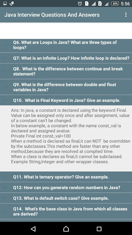 Our Java questions and answers focuses on all areas of Java programming language covering 63+ topics in Java. These topics are chosen from “The Java Programming Language”.