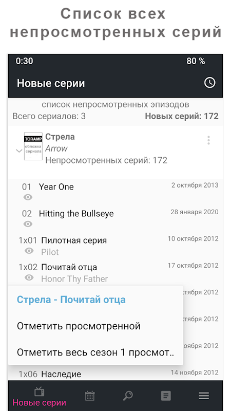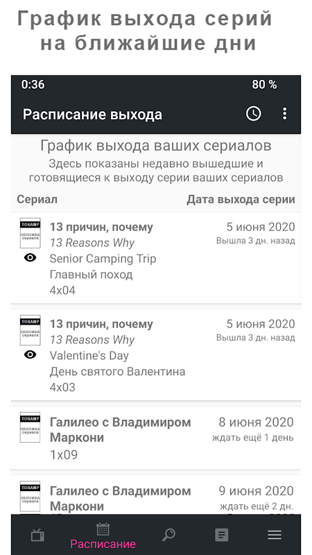이 프로그램은 당신이 적시에 통지 새로운 시리즈를 좋아하는 TV 프로그램의 일정을 추적하고,받을 수있는 사이트 Toramp위한 응용 프로그램입니다.