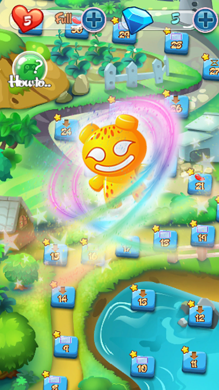 • Less moves = higher score. Try to score high and earn 3 stars on every level.