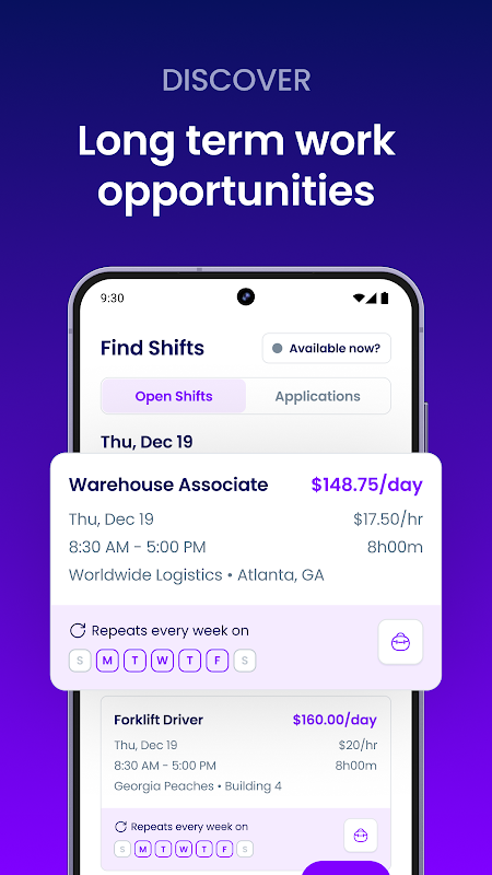 사용 가능한 교대조를 쉽게 탐색하고, 최고의 일치를 수락하고, 모든 일정을 앱에서 관리하십시오. 원하는 시간에 원하는 교대로 근무하십시오. Traba는 기술 개발 기회를 통해 다양한 작업 환경과 역할에서 경험을 쌓을 수 있도록 도와줍니다.