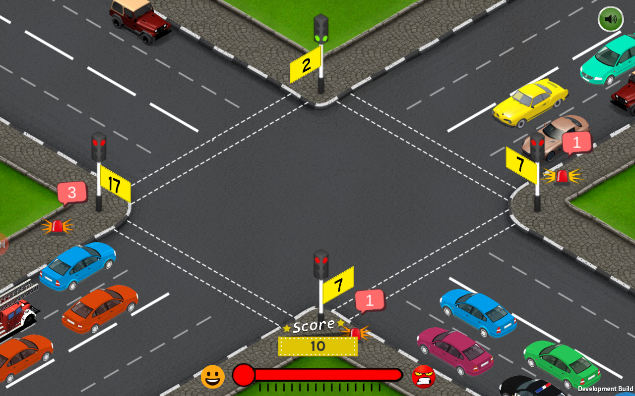 First automatic traffic system will on operation. As time elapse, heavy traffic will come through in one direction. Player can see the number of vehicle for every road. S/he can then switch off the automatic traffic system and then override control. Player shall manually control the traffic as real traffic police do. However police, ambulance, firefighters should get preference.