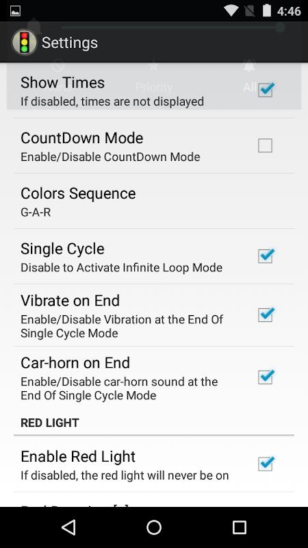 - configurable red, green and amber flashing times
