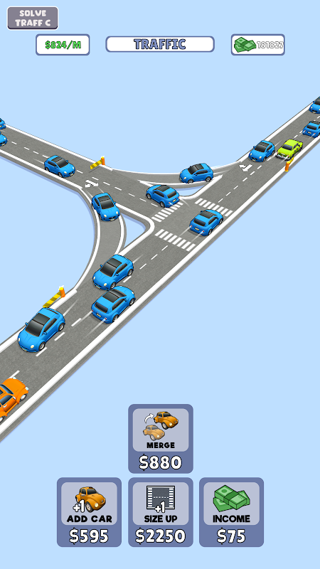 자동차를 만들고 더 나은 자동차로 병합하여 더 많은 돈을 벌 수 있습니다. 병합하여 트래픽을 줄이고 다시 트래픽 생성