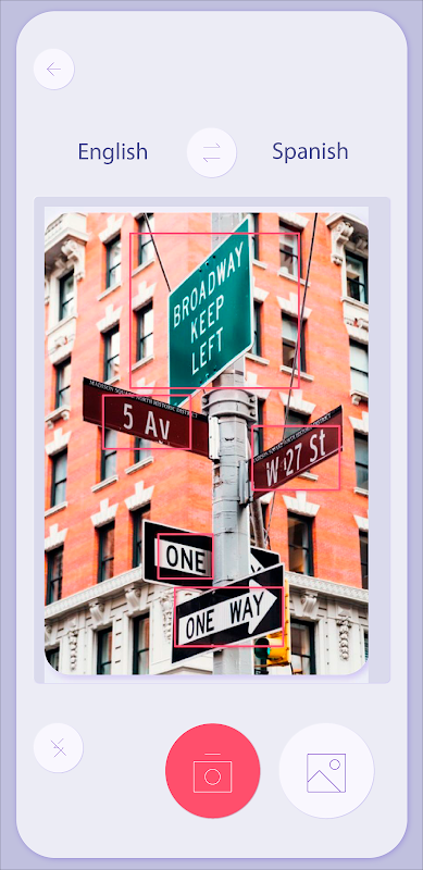 - Detect text from image: you can select an image then the application will help you to detect text and translate them.