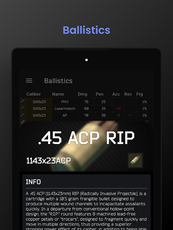 - 신속한 습격 탄약 결정을 위한 포괄적인 탄도 테이블.