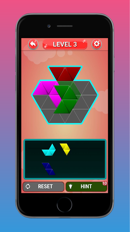 - 도전적인 게임 플레이: 다양하고 다채로운 블록을 사용하여 파란색 삼각형 그리드를 채웁니다. 각 레벨은 당신의 재치와 전략적 사고를 테스트할 독특한 퍼즐을 제공합니다.