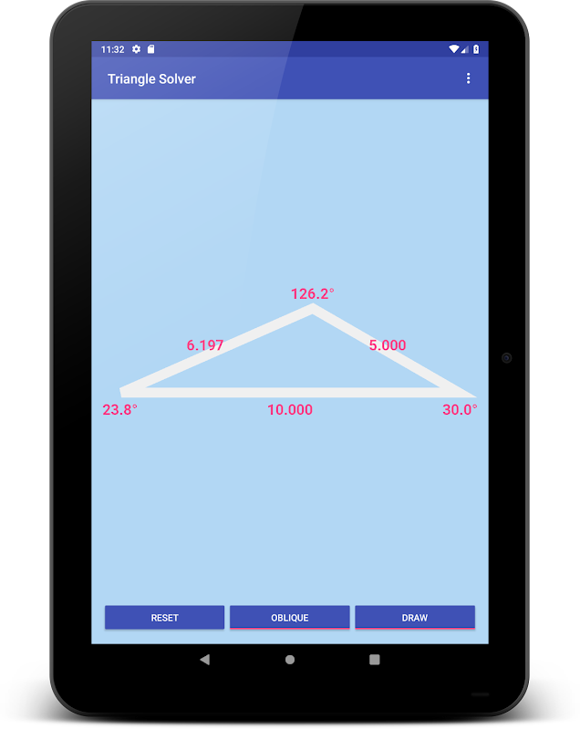 Triangle Solver는 모든 종류의 삼각형을 계산하고 해결합니다. 직각 삼각형과 사선 삼각형이 모두 지원됩니다. Triangle Solver는 사용자의 입력으로부터 전체 삼각형을 계산합니다. 채울 측면이나 각도를 클릭하면 결과가 일반 삼각형으로 표시되지만 올바른 비율로 삼각형을 그릴 수도 있습니다.
