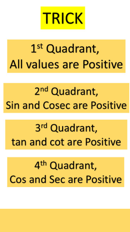 The main intension to bulid this app is that to give students an easy and tricky way to learn trignometry formulae..