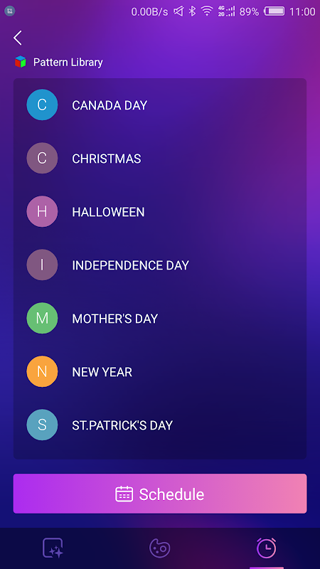 이 앱에는 365 일 전체 일정 및 일일 타이머가있어 모든 휴일에 원하는 조명을 사용자 정의하거나 일년 중 언제든지 사용자 정의 패턴과 색상을 설정할 수 있습니다. Trimlight는 공휴일과 생일 및 기념일과 같은 특별 이벤트를 기억하게합니다.