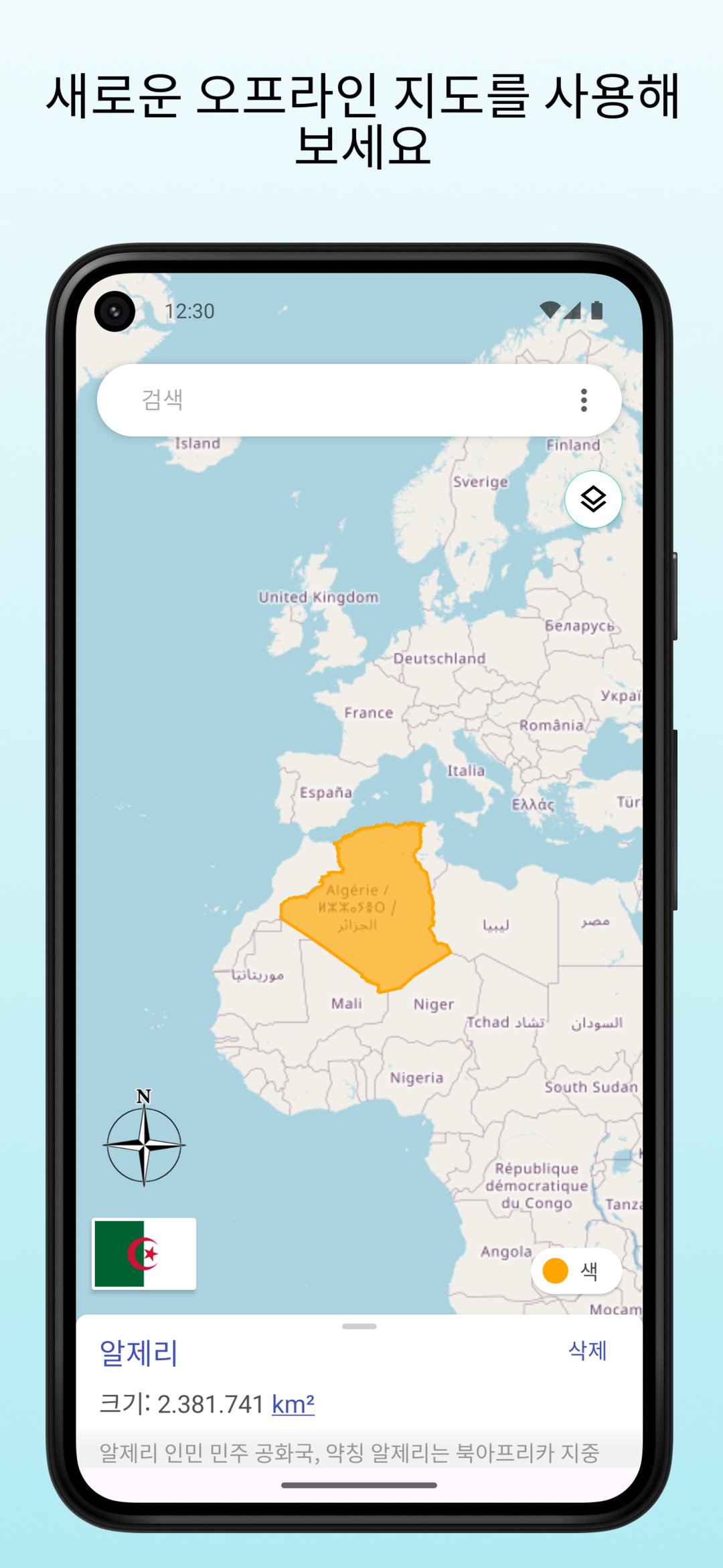이 앱에는 오프라인 지도가 포함되어 있어 인터넷 연결 없이도 사용할 수 있습니다.