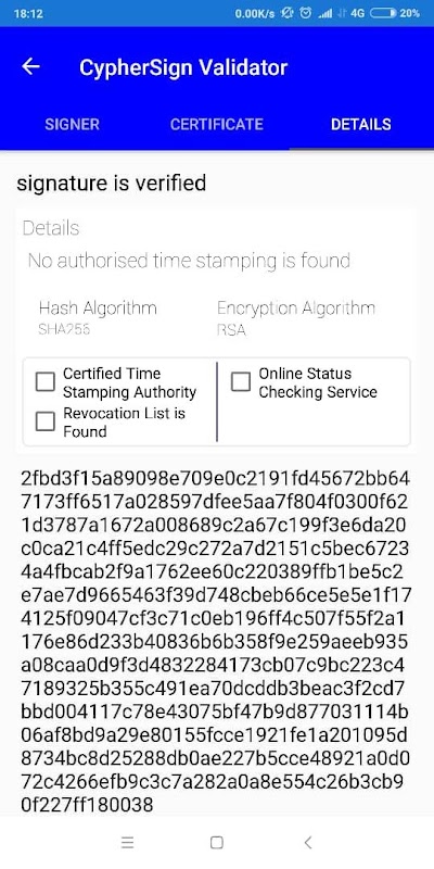 Validate hard copy and soft copy of certified true copy documents that are signed by RaffComm Technologies, CypherSign.