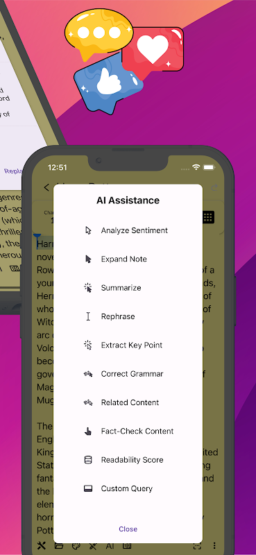 AI 기반 텍스트 분석: 강력한 AI 기반 텍스트 분석으로 단순한 메모 작성을 뛰어넘습니다. 긴 내용을 요약하고, 핵심 포인트를 추출하고, 문법을 수정하고, 메모 내용을 사실 확인까지 해보세요. Tryty의 AI는 최소한의 노력으로 노트를 최대한 활용하도록 보장합니다.