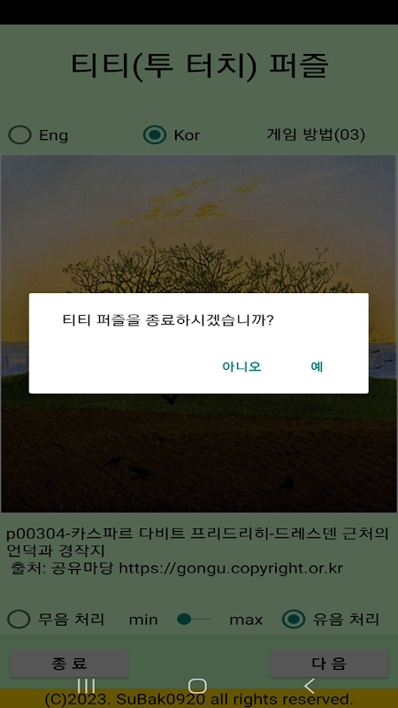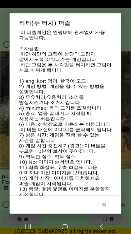 어린이부터 노년층까지 즐길 수 있는 명화 퍼즐 게임입니다
