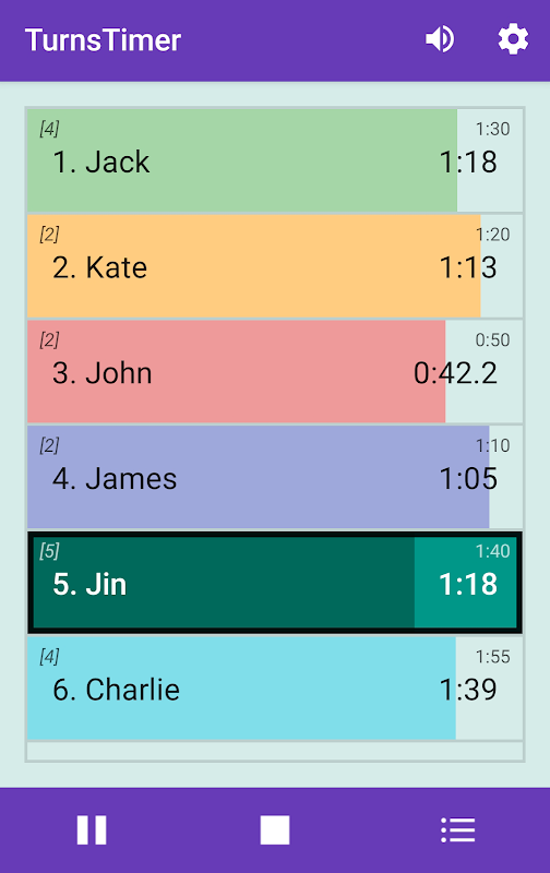 턴 타이머 는 플레이어가 차례대로 시간을 제어하는 게임에서 사용할 수있는 다중 시계 타이머입니다. 그래서 그것은 기본적으로 체스 시계이지만 두 개 이상의 시계가 있습니다. 타이머는 다양한 멀티 플레이어 게임에서 각 플레이어가 자신의 움직임에 걸리는 총 시간을 제어하는 데 사용할 수 있습니다.