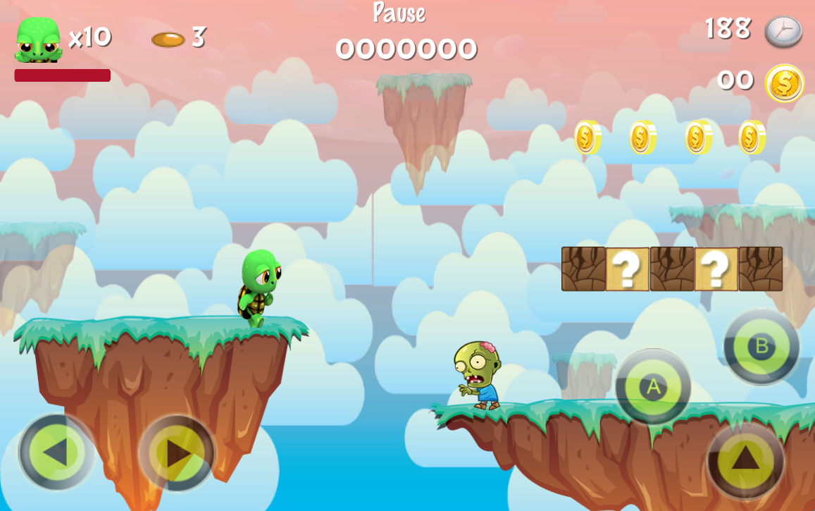 Amazing classic side scroller game "Turtle Jump". This game bring back memories of old school arcade games with numerous adventure. World of this game contains well designed levels, various enemies, bosses, simple gameplay, nice graphics and soothing music and sounds.