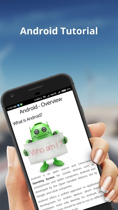Android Tutorial App is an easy-to-use, user-friendly platform to learn Android, both at the fundamental and advanced level. Become an Android developer also used Android Offline App today!